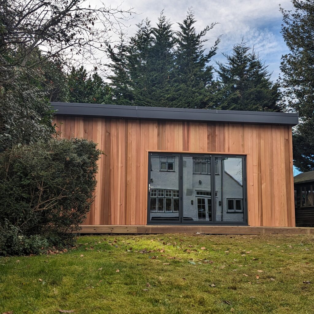 This 6m x 4m garden room was designed with a 3m internal ceiling height to accommodate a state-of-the-art golf simulator, creating the perfect environment for year-round practice. Built with planning permission secured, the space also doubles as a home cinema and private gym, making it a truly versatile addition to the property. Finished with premium materials and tailored for multi-use, it blends luxury and functionality in one bespoke Cedar Space.