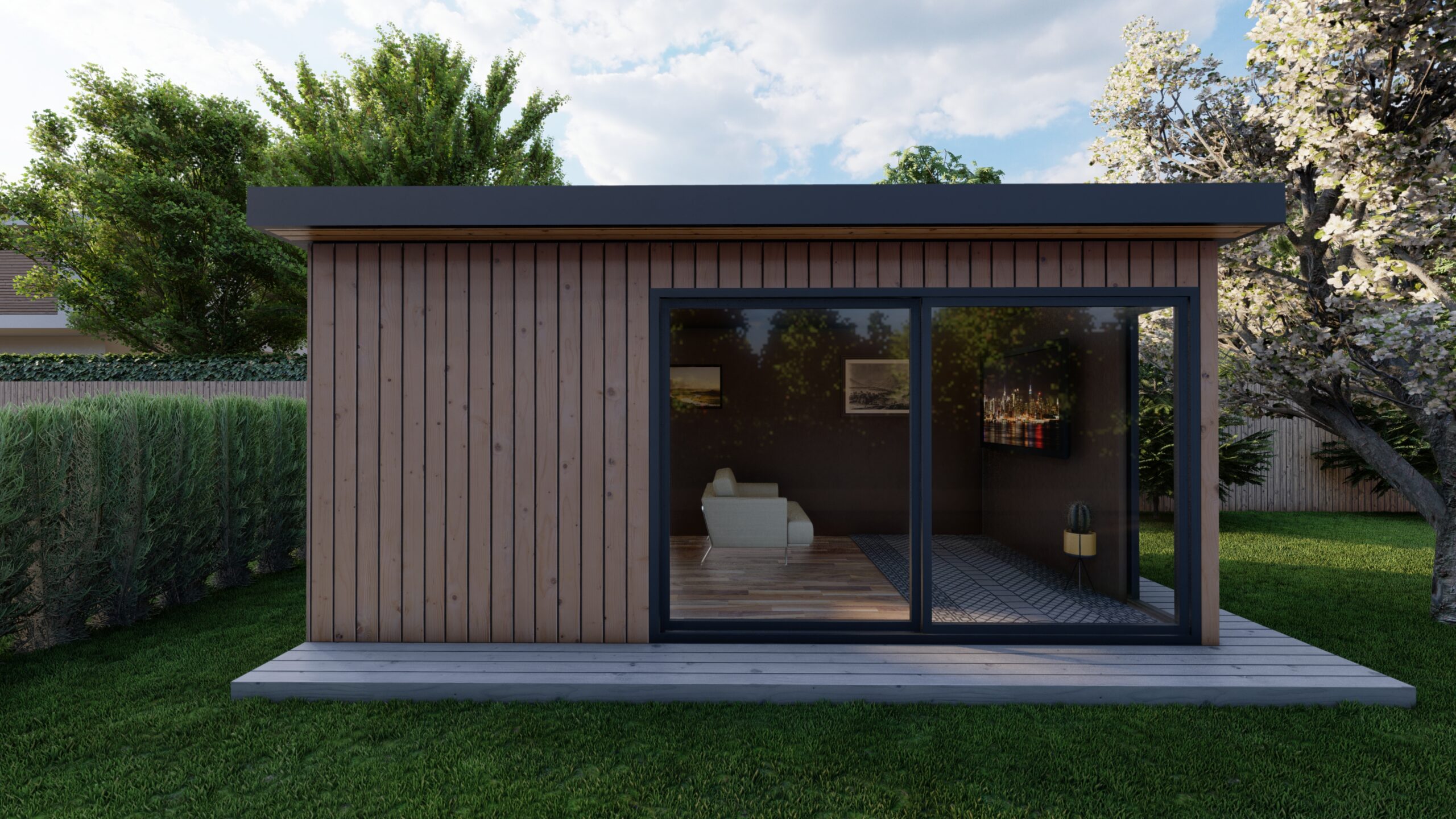 Utilising the maximum footprint before planning permission is required, this 7.5m x 4m garden room delivers a stunning open-plan space for entertaining and socialising. Designed for comfort and connection, it brings the atmosphere of a luxury lounge into the heart of the garden.